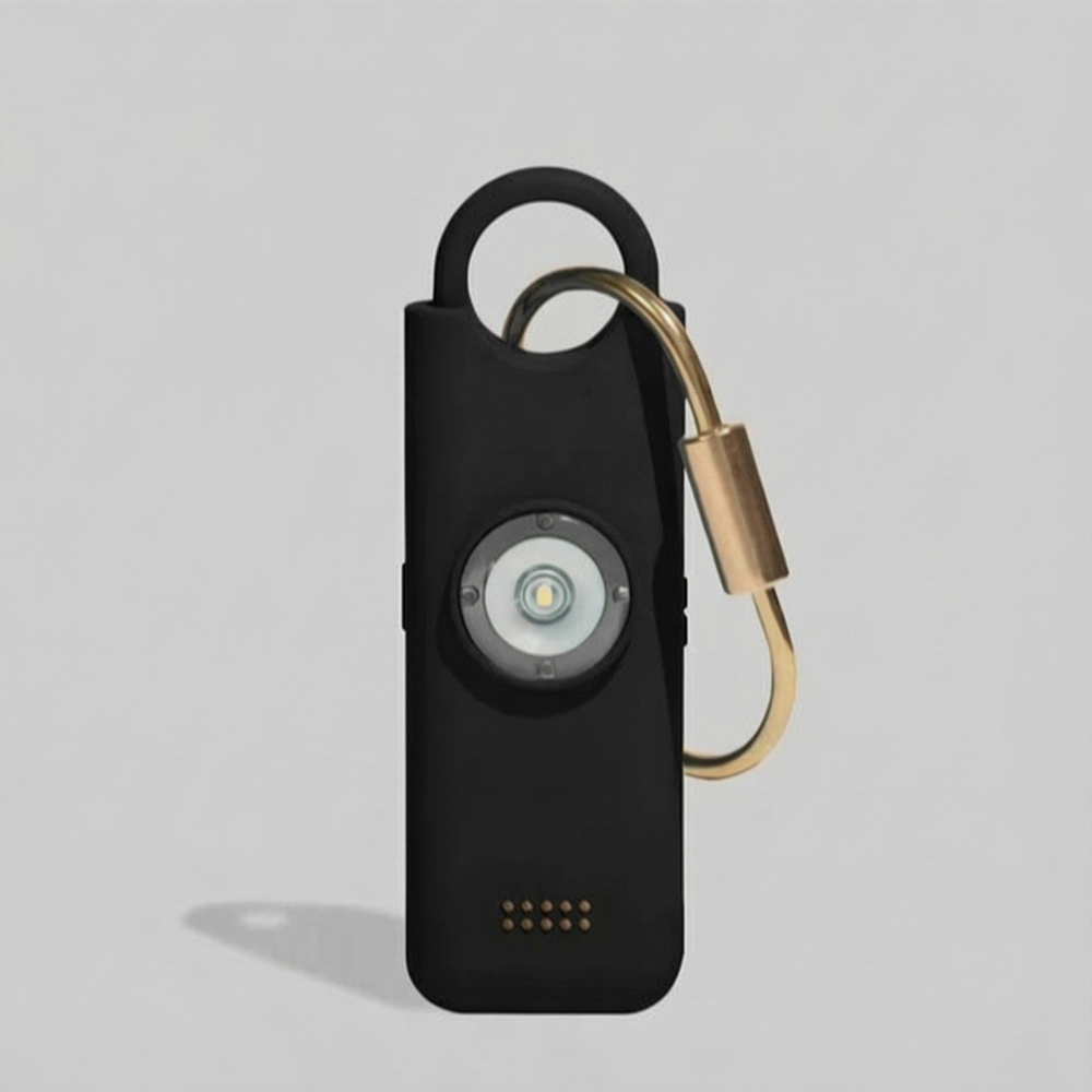 Larmet är kompakt och lätt, utformad för att ligga bekvämt i handen eller fästas på din nyckelring.